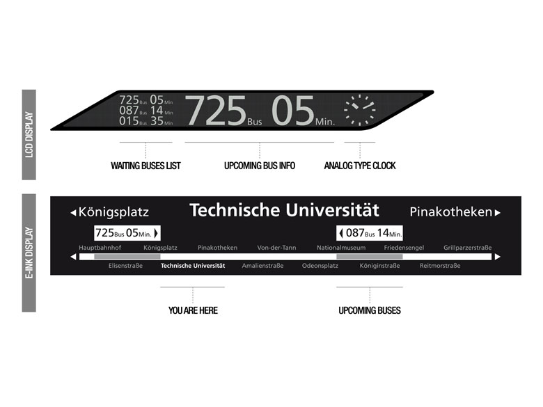 ITIS Den öffentlichen Nahverkehr gestalten – ITIS Design the Public Transport. “Reality is a ride on the Bus” behauptet der Songtext. Doch was lässt sich realistisch am heutigen öffentlichen Nahverkehr verbessern?  Das Konzept der modularen Bus-, Tram- und Taxistationen ITIS hilft Pendlern und Touristen dabei sich in fremden Metropolen zurechtzufinden und unterstützt die Einheimischen bei Ihren täglichen Erledigungen. Projekt mit Designer Hongchan Kim. Erstplatzierung beim Korean International Public Design Award.