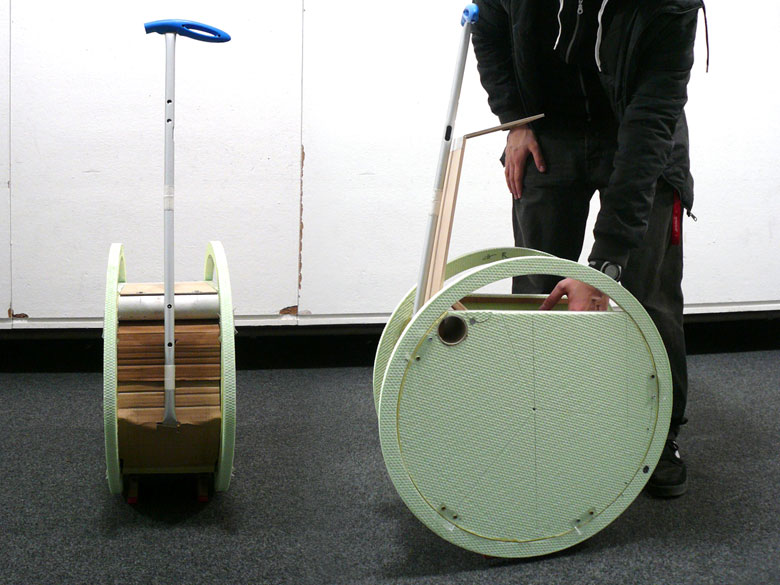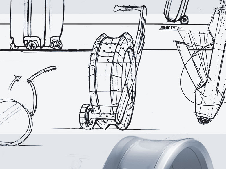 YooYoo Rollkoffer – YooYoo Roll Off. Trolleys sind treue Begleiter auf Kurztrips und fallen immer dann negativ auf, wenn sie mit unwegsamem Gelände oder ästhetischen Anforderungen konfrontiert werden. YooYoo ist von Grund auf neu konzipiert und zeigt, dass es auch anders geht. Treppen sind kein Hindernis und ein ungewöhnlicher Auftritt ist garantiert. Product Design im Gemeinschaftsprojekt mit Marc Landau und Ahmet Cicek für ein neuartiges Taschenkonzept.