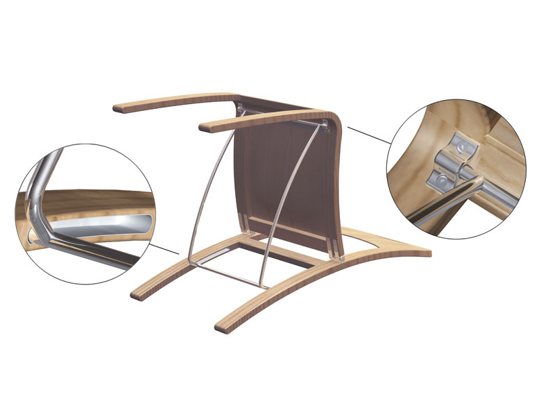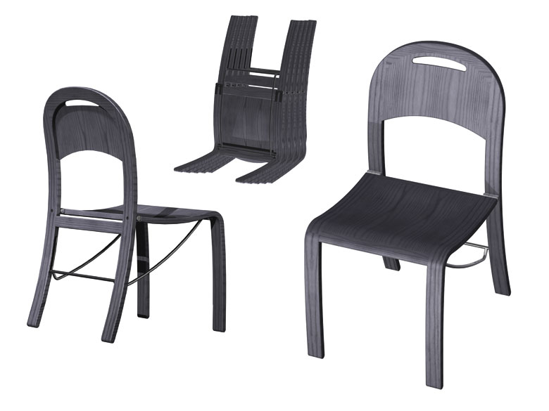 Romeo i Julietta Stuhl – Romeo i Julietta Chair. Sitzen wird zur romantischen Erfahrung. Die Verbindung des natürlichen Werkstoffs Holz mit den Vorteilen eines praktischen Faltmöbels. Der Stuhlstapel wirkt überraschend geheimnisvoll. Ökonomisches Möbelkonzept für die ungarische Holzindustrie. Zusammenarbeit mit der MOME University of Design, Budapest.
