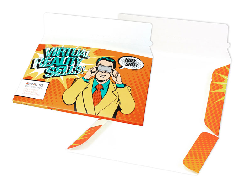 Brand performance GmbH. Gestaltung einer Versandverpackung für eine faltbare VR-Brille. Virtual Reality ist nicht nur eine Modeerscheinung, sondern ein weitreichender Trend. Die Kunden Brand performance und Seismografics haben erkannt, dass die Technologie auch die Werbung und Unternehmenspräsentation erleichtert.